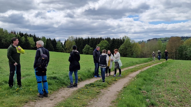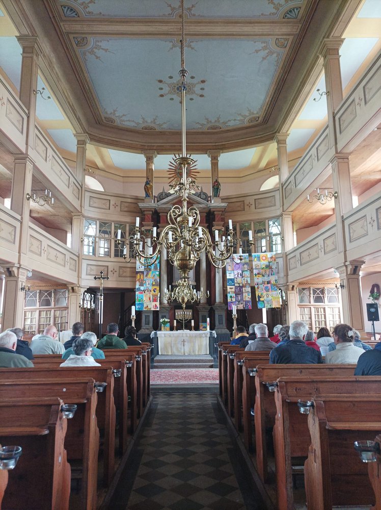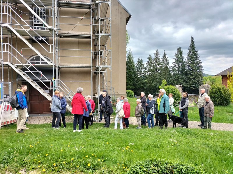 Am 4. Mai 2025 machten sich 15 Gemeindemitglieder (und ein Hund) von Aue und Schneeberg zu einer Maiwanderung auf. Vom Ortsrand Schneeberg ging es durch Wiesen und Flur nach Weißbach, wo wir nach 1 ½ Stunden an der evangelischen Kirche eintrafen.